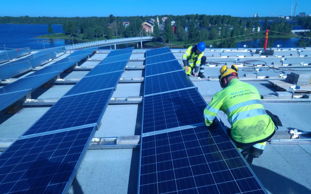 Kesän ensimmäinen kohde on Oulun kaupungin pääkirjasto johon asennetaan noin 500kpl aurinkopaneeleja. Työt etenee sovitussa aikataulussa.